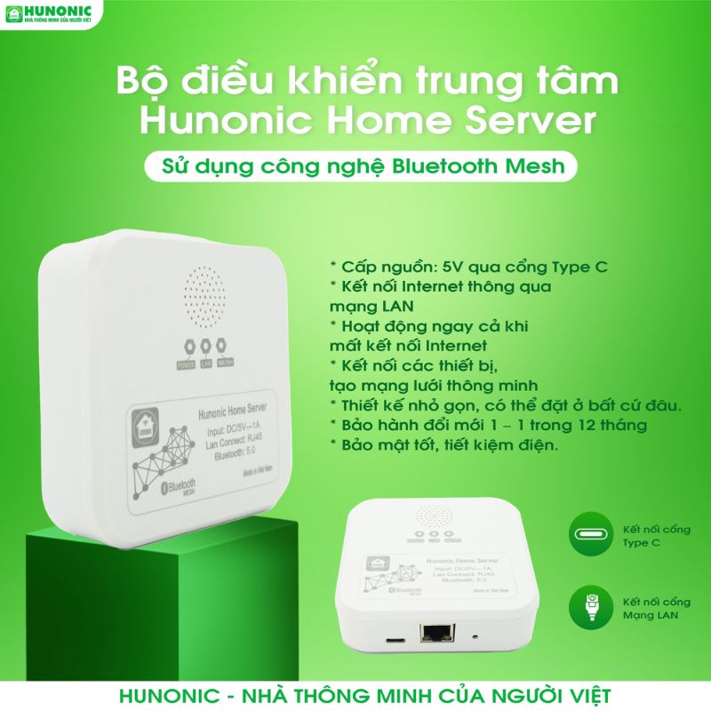 Các sản phẩm sử dụng công nghệ Bluetooth Mesh như công tắc Hunonic Luxury, Hunonic Premium và các cảm biến thông minh cần có bộ điều khiển trung tâm để tiếp nhận tín hiệu và lưu trữ các thiết lập, ra lệnh cho các thiết bị hoạt động nhịp nhàng, chính xác.
