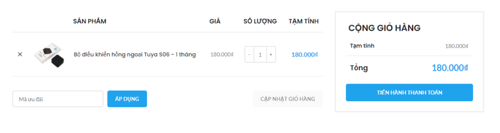 – Sau khi thêm các sản phẩm cần mua vào giỏ hàng, Quý khách bấm vào nút “tiến hành thanh toán”.
